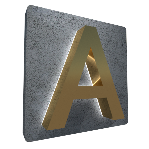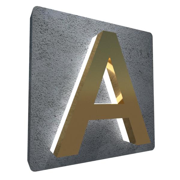 Объемная буква из нержавеющей стали и акрила на задней стороне.