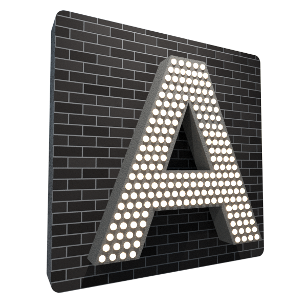 Объемная буква из ПВХ, композита или дерева с лампами на лицевой стороне.